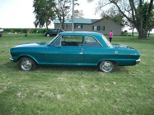 1964 nova with a new 327 engine less then 500 miles th350 trans new master cyclinder and brakes new gas line nice paint this car is a nice driver it needs a few things done it needs weatherstipping and the seats have a couple tears look at the pics the seats were died black at some point they were red before this is a car that was drivin so there is a couple dings and nicks nothing big but theres a couple small spots here and there the engine has a small cam and runs great the kick down cable needs hooked up at the carb the tires all almost new trunk floor is very nice it had floor pans put in last year clear title any ? please call me at 217-737-4026 open to trades the car must be paid for in 7 days I will store it for up to 30 days free