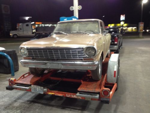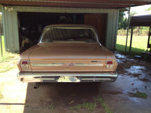 Have a very nice Chevy II Nova for sale. It has not been assaulted, the dash in perfect with no hack job to install a radio, all the glass appears to be original. Has the straight six (194 cubic inch) with the power glide automatic transmission. The body is really straight with very few signs of wear. I bought it to restore, which would require very little work. Unfortunately, a family member has experienced some financial difficulty; therefore, I am giving someone else the opportunity to finish her. I work out of town and will download some additional pictures when I get home. I have clear title in hand to the vehicle. Not sure of the mileage since she is 50 years old.
