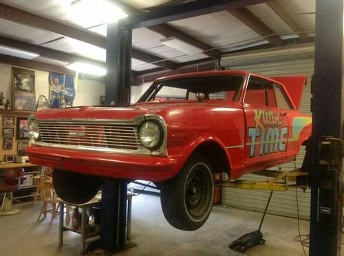 2x3 rear sub frame, Frame connector to factory front end, 4 link track bar, Ford 9 inch fabricated housing, Fiberglass front cap. Clean Title, Chrome alloy roll cage that's just tacked needs fully welded, Weld Racing rims with racing Slicks (REAR ONLY) as in a couple of the pics.. They are not on the car now, but stored in my shop. Overall Good condition if not Great for a 64 :-) thanks and GL