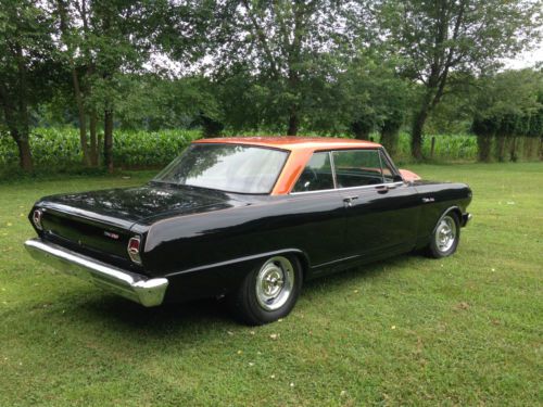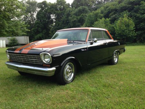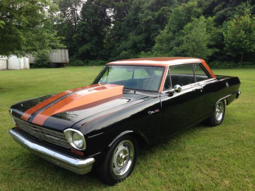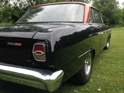 UP FOR SALE IS A 64 NOVA SS,CAR HAS A FRESH STRONG RUNNING 350 MILD CAM WITH 202 DOUBLE HUMP HEADS,NEW HOLLEY 4 BARREL CARB,HEADERS WITH NEW DUALS THAT DUMP OUT BEHIND REAR WHEELS FOR A AWESOME SOUND,AUTO TRANS WITH SHIFT KIT AND SMALL STALL SPEED,CAR HAS ALOT OF NEW PARTS,HAS A REALLY NICE LOOKING TWO TONE PAINT BASE COAT CLEAR COAT PAINT JOB WHICH LOOKS GREAT,ALSO HAS FIBERGLASS LIFT OFF COWL HOOD,RALLEY WHEELS,DRUM BRAKES,BLACK INTERIOR WITH NICE CARPET,ALL GLASS IS IN GOOD CONDITION WITH A NEW WINDSHEILD,CAR IS GARAGE KEPT,UNDERSIDE OF CAR IS SOLID,HAS BEEN PAINTED AND UNDERCOATED,CAR WILL NEED A HEADLINER WHICH CAN BE DONE BEFORE SHIPMENT,ALSO HAVE NO PROBLEM WITH HELP LOADING CAR,HERE'S YOUR CHANCE TO OWN A NICE MUSCLE CAR THAT GETS COMPLIMENTS EVERYWHERE IT GOES,ANY QUESTIONS JUST ASK AND HAVE A GREAT DAY!