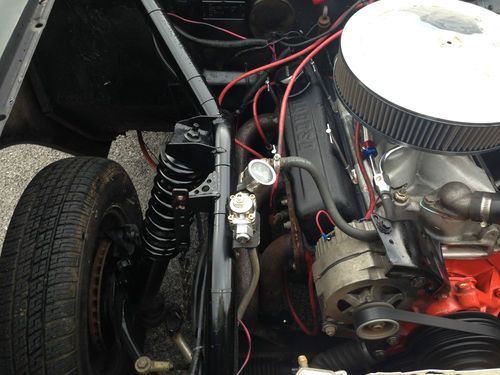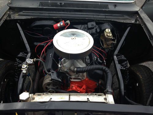 Engine- 406 cui small block chevy, world product iron heads, trw flat top forged pistons, steel crank, .535 lift cam, big tube stahl pattern headers into 4 inch bullet mufflers ( car sounds great), vic jr intake, holley carb, msd digital 6 programmable ignition, runs on pump gas, its a great low maintainence motor and runs great just cruising on the street. It has a brand new vacuum secondary holley carb, its ok for cruising but if you want to race the car I would recommend a mechanical secondary carb. The motor holds great oil pressure and is ready to rock.