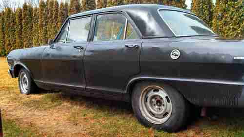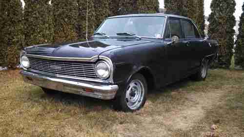 1965 Chevy II ready for restoration. Decent interior with front and rear bench seats. Headliner is in very good shape. Exterior needs some minor work and paint. Has the original straight six under the hood. This car is in running condition. Rally rings and center caps (not shown in pictures) are also available. This car has a brand new gas tank and new battery.