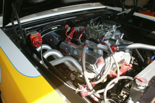 65 Nova Race Car, 405 cu sbc w/ alu heads, 14.36:1 CR, Holley 4150, Isky roller cam, Jesel belt drive and shaft mount roller rockers, Manley Race Flow 2.055 in/ 1.60 ex valves, Ross Pistons, Total seal rings, Scat 4340 3.75" crank w/ Fluid damper, MSD w/ launch control, Moroso vac pump, CSI elect. H2O pump, Turbo 400 w/ transbrake & J.W. Ultra bell housing, 9: rear w/ Strange Ultra case 9310 5.10 and 4.86 gear sets, 40 spline spool, Strange rear disc brakes, Reat M/T ET Drag slicks 33X10.5X15 on Weld Wheels,M/T 25X4.5X15 fronts, Heidt Mustang II front end, Chris Alston 4-link, full cage, Fiberglass frt. fenders, doors hood, bumpers and deck lid, Glas windshield and rear window, lexan side windows, 10 gal fuel cell, Autometer sport-comp tach, vacuum , H2O temp, trans temp, fuel psi, oil psi and volt meters. Very competitive 10 second car. Fresh and ready to go.