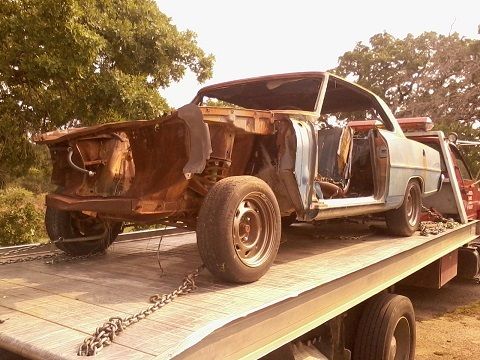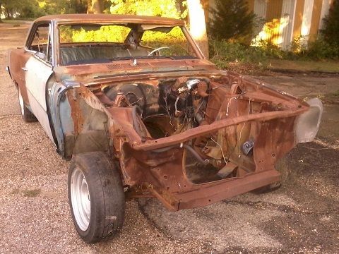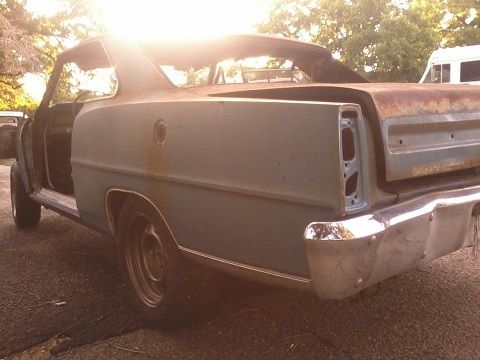 1966 / 1967 Chevrolet Nova Chevy II SS body 4-speed car - Roller, 10 bolt rear end, drum brakes, rusty floors, rusty trunk, real nice drivers rear quarter panel, good passenger quarter except behind the door - got hit but very solid, passenger door real good, passenger rocker panel needs a pull - not bad, good roof good trunk lid, has 4-speed hump and clutch pedals, and floor shift steering column, padded dash, drivers bucket seat, was marina blue with blue bucket seats, has VIN plate still on car, *** please note this is not a salvage title *** sold with bill of sale or optional bonded title for $250 extra, rolls and steers for shipping, VIN # 123377L156103, what you see is all I have for the car, for questions or more pix call Brian 501-779-5277