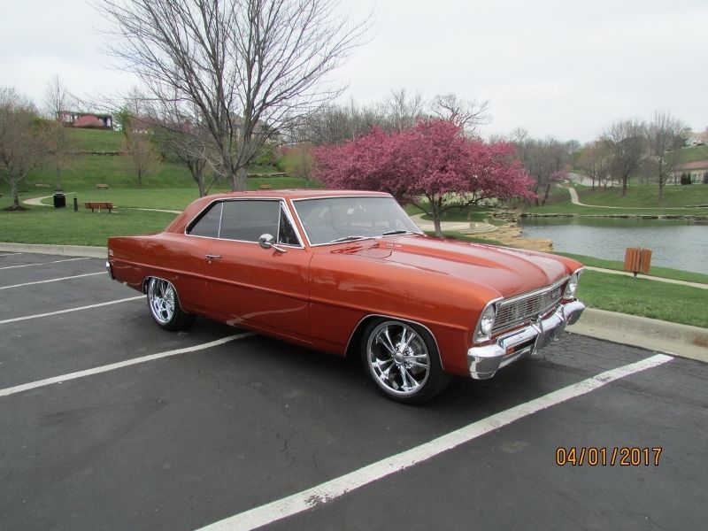 This is a super nice Chevy Nova, not a true SS. The paint color is a custom mix using Atomic Orange and Red.