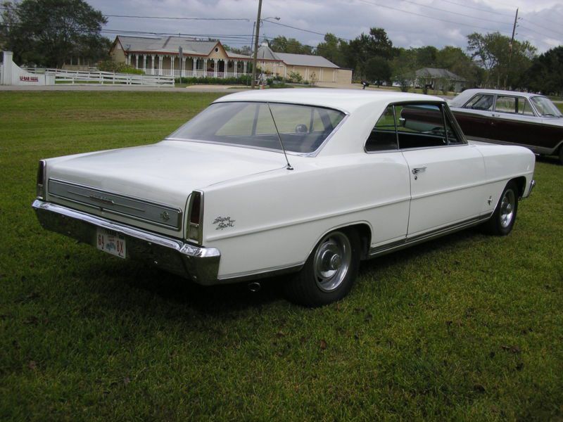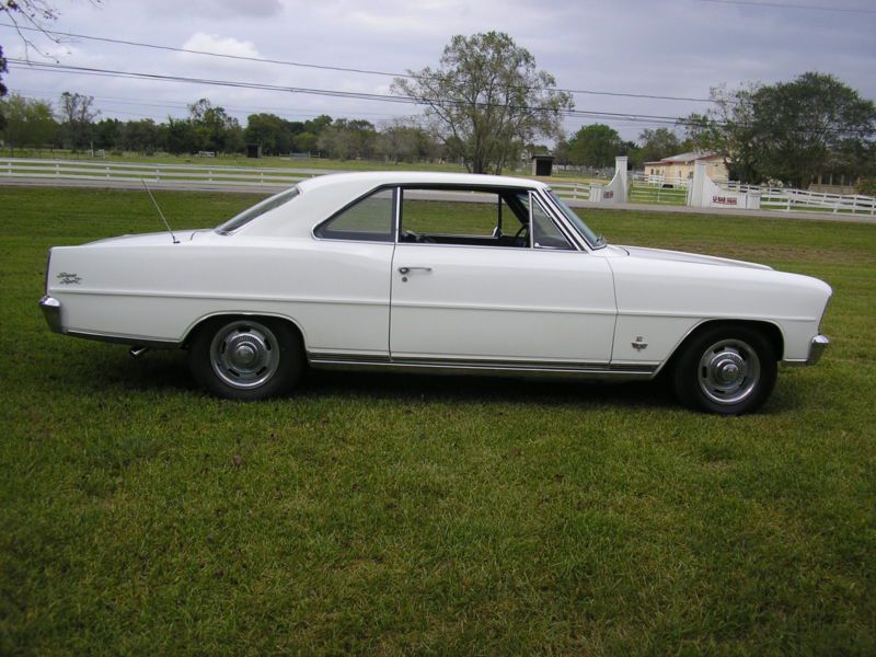 1966 CHEVROLET - NOVA - SS - SUPER SPORT - 2-DOOR HARDTOP , REAL SS CAR - 327 CU. IN. - 350 H.P. - DOUBLE HUMP HEADS - MUNSIE 4-SPEED - 12 BOLT POSI REAR , NEW EXHAUST , NEW ALUMINUM RADIATOR , NEW GAS TANK , NEW TIRES , ERMINE WHITE PAINT FINISH IS IN GREAT CONDITION , ALL INTERIOR IS IN GREAT CONDITION. THIS IS A RUST FREE CAR , NO RUST HOLES ANYWHERE , NO PATCH PANELS EVER . QUARTER PANELS STILL HAVE FACTORY NUMBERS STAMPED ON TOP. CAR RUNS & DRIVES GREAT , HAS PLENTY OF POWER. GLASS IS GOOD , AND BODY GAPS ARE GOOD.LOOKING AT THIS CAR, IT LOOKS LIKE A VERY NICE SURVIVOR .