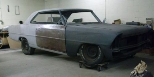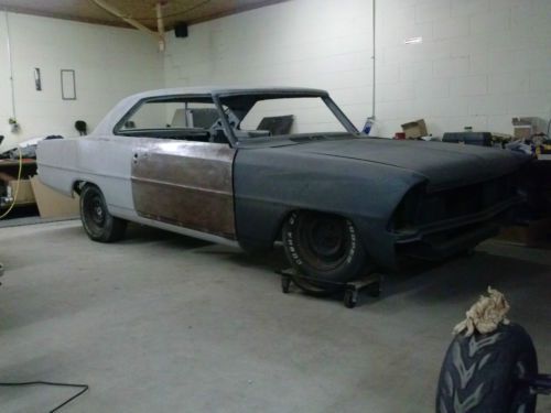 1966 CHEVY II 2 DOOR HARDTOP THAT HAS AN EXCELLENT BODY. IT WAS MEDIABLASTED AND EPOXY PRIMERED. IT HAS NO RUST AROUND THE WINDOWS LIKE MOST DO. IT WILL NEED A ONE PIECE FLOOR PAN INSTALLED WHICH CAN BE PURCHASED FROM CLASSIC MUSCLE FOR 369.95 ( http://www.classicmuscle.com/p-34583-full-complete-hump-designed-for-floorshift-mt-no-hole.aspx ) PLEASE NOTE THE CAR HAS A 1967 FRONT END THATS WHAT WAS ON IT WHEN I BOUGHT IT. I ALSO HAVE AN EXTRA DRIVERS SIDE DOOR AND TRUNK LID AS WELL AS A SET OF SS BUCKET SEATS WHICH ARE VERY HARD TO FIND BUT THATS ALL THE EXTRA PARTS SO WHAT YOU SEE IN THE PICS IS ALL I HAVE FOR THE CAR. THIS CAR CAME FROM GEORGIA AND THEY DO NOT ISSUE TITLES FOR CARS THIS OLD BUT I DO HAVE THE BILL OF SALE FROM THE PERSON I GOT IT FROM.