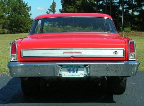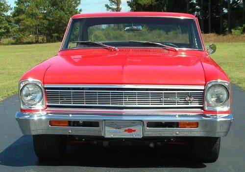 1966 Chevrolet Nova Chevy II Super Sport. True 118 SS car. Bright red with black interior. 454 Big Block with mild after market cam. Richmond 6-speed transmission. Heidts Suspension including front end with Rack & Pinion Steering, tubular A arms, 4 wheel Disc Brakes and 9 inch Ford rear end with 4 link. Aluminum radiator. Billet Specialties Wheels with 225/45ZR17 front tires and 275/40ZR17 rear tires. All stock gauges work well. This Nova runs and drives extremely nice. Located in Aiken, South Carolina. Please contact us to inspect it and for a test drive.