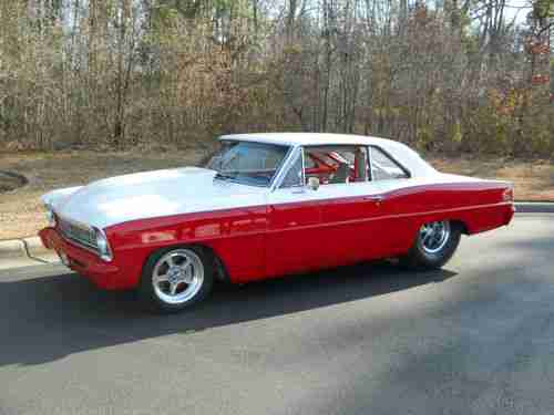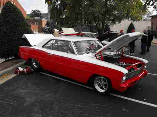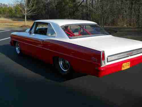 1966 Nova SS Pro Street This was one of the first Nova's to be painted two tone,it has been painted for a few years. Don't let that fool you though, the paint quality is still excellent, car has been kept inside with a cover on it. I have owned the car for about 10 years. This car will make you proud to own it, just time for me to move on to something else, This is a very straight and fast all steel car other than Harwood cowl hood, rear wheel openings have been stretched, firewall smoothed, engine compartment painted with the same quality as the body, all chassis and floor pans painted (underneath has some chips from driving). This is Nova is powered by a Scott Shafiroff Ultra Street 540 dynoed at 781 HP also features a JW Trans. TH-400, Mark Williams Driveline and a 9"ford rear. It rides on Billet Specialties Wheels and Mickey Thompson Tires.