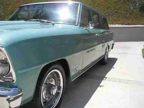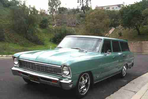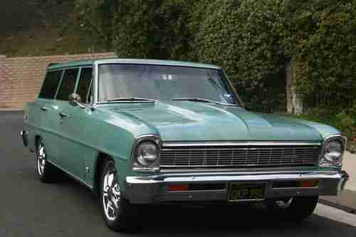 I have a 1966 Nova Wagon in very good condition! I have owned her for two years and had my mechanic go through the whole car. He replaced or restored almost every part on the Nova. The freshly built engine has less then 1000 miles. She drives excellent, jump in and go anywhere! She has a beautiful black interior with all the trim. The stance looks great with the Foose wheels and the disc slotted and vented breaks. The Vintage A/C works great and so does the heat. Here is a small list of what was done to the Nova.