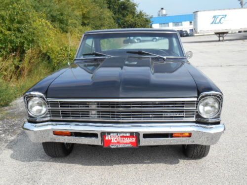 1967 CHEVY II NOVA LS2 6 SPEED Restored from the ground up. I would say Frame Off but there is no frame on these cars. All new front suspension and rear bushings, front and rear manual drum brakes, lines, and master cylinder. All chassis/body seals rubber, felts, door sills, front windshield. Custom base coat clear coat paint job with black finish and original trim, with new front bumper and headlight bezels. This car is Show Car straight with EXCELLENT GAPS, and uniform finish in door sills, hinge, trunk edge, and firewall areas. All new interior with a custom console with gauges and A/C vents, fully sound insulated from roof to doors and floors. Motor is a 2005 LS2 6.0 liter with a T56 6 speed transmission and a GM Motorsport RIP SHIFT shifter from a GTO Pumping out roughly 460 horse power after engine upgrades. Cam shaft is Texas Speed & Performance Magic Stick (MS4)239/242.649/.610,111.5 LSA with a very thumpy idle. All fuel-injected with custom ECM program for cam shaft. Precision Race Components Gold Spring Kit with Titanium Retainers, Seats and Seals; Texas Speed & Performance Chromemoly 7.40 push rods; ATI Super Damper. 1 3/4" long tube headers; 2 1/2" exhaust with X-pipe and turbo mufflers. Auburn Gear Posi Trac with 3:08 gears, cruises out at less than 1,800 RPM on the highway. 17" Chrome Chip Foose wheels. Complete Vintage Air Front Runner pulley system (very cold A/C!) with stock heater controls. Bolt in sub frame connectors and custom made drive shaft. Car has 43,753 original miles, 2,843 put on after build. It was an original Arizona car brought to Indiana in 2003. LED tail lights. Too many new parts to list. Everything works great on this car except wiper/washer. Drives great, definite eye catcher! Do not buy unless you want attention!I have a 80 car indoor showroom in Milwaukee Wisconsin and we stock 3-4 million in sports cars. They are mostly newer cars. This is the first Restomod we have owned. My sales manager knows alot about these and is trying to talk me into buying Restomods and developing them as a part on of our operation. I told him to buy a couple and see how they work for us.This is the first one he bought and when it rolled off the transport I was in awe at its condition. I took it for a drive and was amazed at how well it drove. Seats were very comfortable and the ride quality was great.The car is scary fast.From the under side, the interior and the body this car looks and drives like a almost new car. It could not be any nicer. Please if you a fussy anal person like I am you have found the car for you. I you want to send out a inspector I would welcome it. If you want to fly in to inspect it before auction ends and find anything at all that does not make you happy about this Nova hand me your plane ticket and I will write you a check for your plane fare. Please call me first because car is for sale locally to make sure its not sold.** I would consider a trade.** International Buyers Welcome** Feel free to call me I like my work and would be happy to hear from you. 414-531-2222 Best regards, Harry |