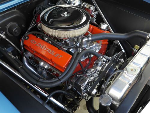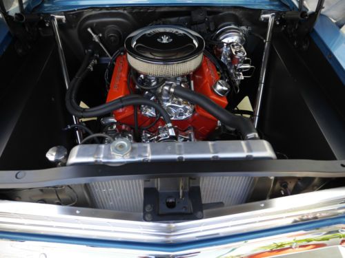 > New Eldebrock carburetor and polished intake manifold with serpentine belt set up