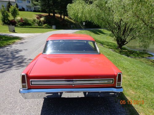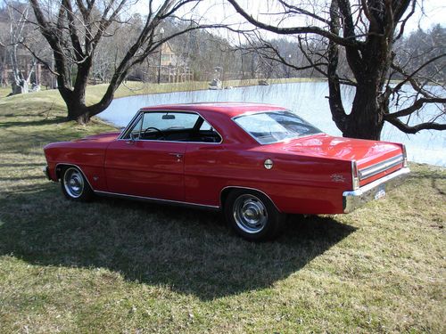 Very clean and factory original Super Sport Nova. Strong and dependable 283 engine with a mild cam. Powerglide transmission. 10 bolt rear end. Correct SS interior in excellent condition. Original, rust free floorboards and trunk pan. The paint and body are both in very good condition. Excellent mechanical condition. Dependable enough to drive from coast to coast. This Chevy II has not been cut up, altered or hot rodded. Original equipment from the factory.
