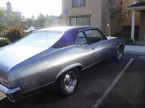Clean and Fast 68 Chevy Nova with front disc brakes, 400 turbo transmission, 396 Rat motor, chrome rally rims, immaculate interior and black vinyl top. Runs really well and is in great condition.