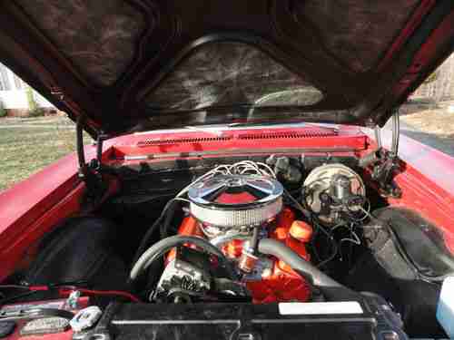 327 Engine bored 30 over. Sounds and runs great off of 87 octane pump gas. 600 box holley carburator. 4 speed transmission. Less than 500 miles on restored.