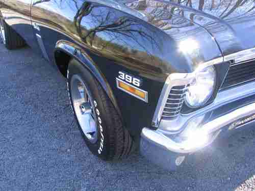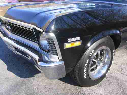 This is a 70 Chevy Nova SS with 454 big block automatic with 12 bolt rear-end and power disc brakes. Black inside and out super nice car and super solid really a great body. Has the factory SS wheels and tires are practically new. Flo Master exhaust. The car runs and drives good you can drive it home. Everything works well including all gauges and lights. This car has all original sheet metal in floors, trunk, frame rails, spring hangers and are in real good shape. Car is as you see in pictures slick, straight car. This car is also for sale locally so I may end auction at any time.