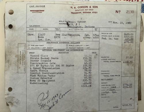 Trim: NOVA SS L78 396/375HP 4SPD 12 BOLT PDB TACH