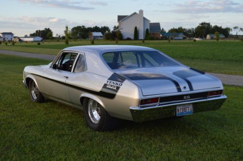 1970 Chevrolet Yenko Nova all steel except fiberglass 4" hood. It was built by a professional race car shop, DRAGNUTZ Racecars Chicago Ill. All Chrome moly cage certified to 8.50 has oringinal frame rail to top of rearend. Wilwood disc brakes, 9" Moser alum. lightweight center section with gun drilled and star flanged axels, 2000 hp rated turbo 400 w trans brake alum. driveshaft, 565 Reher Morison BBC with 355 dart cnc'd heads and dart block, 500 hp big shot plate, Lemons headers. No money was spared and is a very nice car. The car is more like a show car than a Racecar. Could easily be turned into a prostreet or pro touring car. This car needs nothing its race ready call with questions 740-225-4076