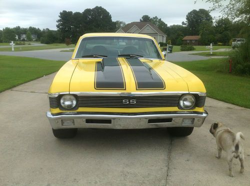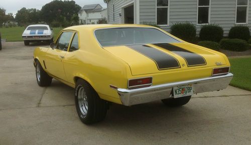 1970 Nova yellow with black stripes. 350 automatic, posi rear end with 373 gears. New brakes, headers, Crager SS rims. New floor pans, bucket seats, Hearst shifter, new door panels and new carpet. Runs good, body in excellent shape, no rust. Engine is rebuilt and about 10,000 miles on it. For questions call Ray 252-917-1108.