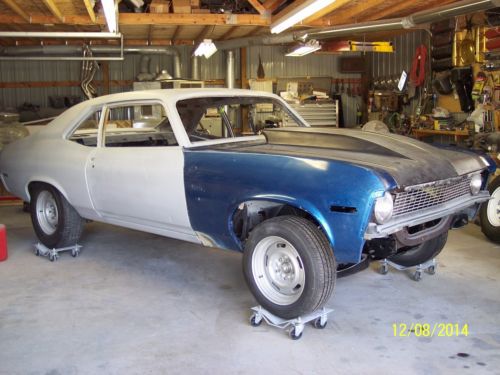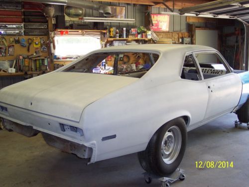 1970 nova was a drag car needs finishing front end is all new has a 488 12 bolt ladder bar rear. have new rad support, rear taillight panel. new quarters Have used door panels no seats all glass but no windshield lots of misc. no motor or trans
