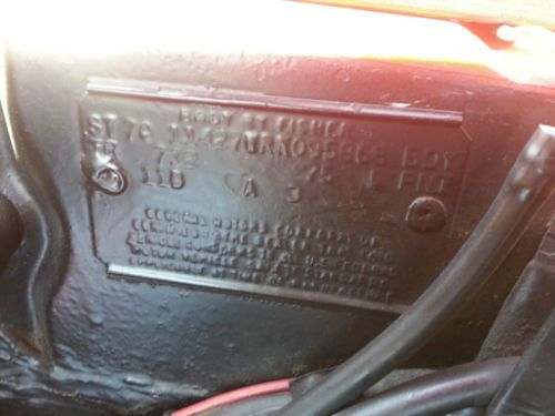 4 SPEED FACTORY MUNCIE 410 REAR FACTORY SPENT MOST OF IT LIFE IN HEATED AND A/C GARAGE MOTOR HAS ABOUT 5000 MILES ON IT TRANS AND REAR SERVICED NEW CLUTCH KIT FLY WHEEL ECT ALL SERVICED FOUR CORE RADIATOR NEVER OVER HEATS BODY LAZOR STRAIGHT COUPLE VERY SMALL TOUCH UPS YOU WILL PROBABLY NEVER NOTICE ENTERIOR EXCELLENT EVERYTHING WORKS GREAT LIGHTS BRAKES ECT I HAVE FACTORY CENTER CONSOLE WITH ALL GAUGES THIS IS A GREAT CAR ALWAY WON CAR SHOWS TURN KEY AGAIN IT FASTTTTT YOU WILL HAVE NOTHING TO DO JUST CLEAN AND DRIVE DONT KNOW IF MILES ARE RIGHT BUT CAR LOOKS LIKE IT IS THE RIGHT MILES BUYER WILL PAY FOR SHIPPING |