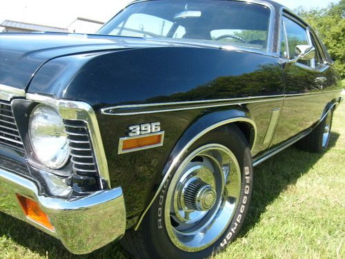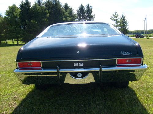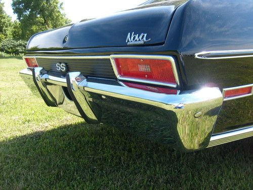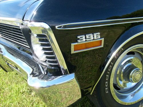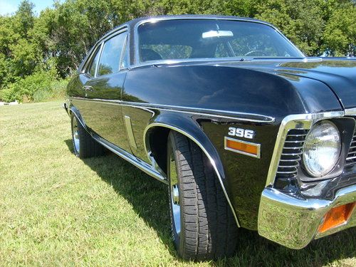 This is a 1971 Chevrolet Nova SS 396 big block automatic. It is a true solid CA car. Belonged to my Uncle. He spent over $35,ooo and the wife screamed "UNCLE". So let us just say interest was lost on the project and the funds to complete it disappeared....it just needs the little things to finish. They are mostly time consuming. The paint is gloss black and two years old with a new top. 90% all new chrome. These things are all new: bumpers, bumper stops, lights, bezels, trim, new vinyl top, 15" Rally Wheels on new BF Goodrich rubber. Runs and drives but could use a tune up. Trany new 2 years ago but a seal is leaking from sitting. Big block 396 with stock manifolds and an Edelbrock carburetor. In dash tac, air controls, bucket seats with automatic on the floor. No radio. Trunk is full of new parts like weather strip seals, extra aluminium radiator new, windshield wipers. This is a beautiful car. All it needs is someone to do those finishing touches that make these cars command the big dollars for resale. Any questions please feel free to call or text 608-341-0226...