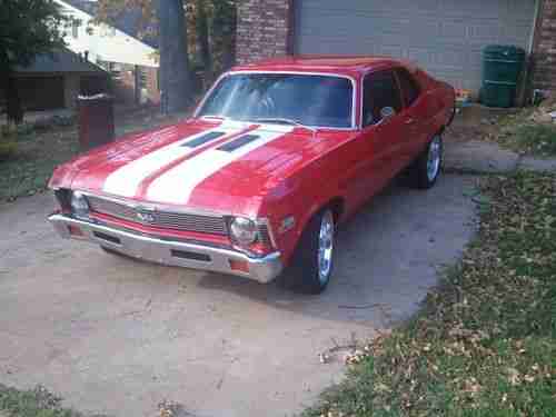 1972 chevy nova with new ppg professional paint job.super sport tribute. some new stainless trim.it has a freshly rebuilt 427 big block with comp cam and aluminum rectangle port heads. it has a modern tremec overdrive 5 speed transmision with centerforce clutch. motor has about 500 miles on it. car has traction bars and subframe connectors on it. 10 bolt rear end with fresh 4.11 gears and positraction diff. it has headers and full 3.5 inch stainless exhaust with flowmaster mufflers.no heat or air conditoning. manual steering gear box. it has large 4 core radiator and electric fan setup. car has stainless steel brakes corporation front disc brakes and rear stock drums. it has electronic fuel pump and rear mount battery in trunk. it has the stock fuel tank. car has brand new 18x8 boss 338 polished aluminum wheels with new low profile tires.car has brand new windshield. the ignition system is amsd digtal 6 box with msd pro billet distributor. interior is ok, but could use fresh front door panel and a carpet kit. also small tear in head liner. interior is black vinyl. front seats are fiberglass race seats that arent that comfortable. the rear seat is factory and in excellent shape. if you win auction i would like you to pay through pay pal or certified check. you have to come pick up car in person.