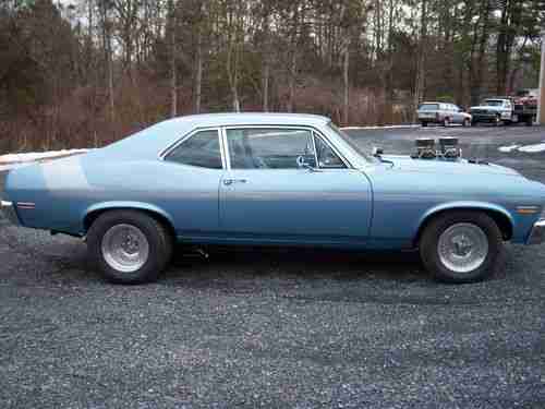 1972 chevy nova. This is A street car I drive it on A regular basis in the summer, it runs on pump gas. Power disc brakes, power steering. 454 eagle steel crank and H beam rods, forged bower pistons, roller cam , rectangle port heads, 6/71 blower, 750 holleys. Turbo 400 trans with manual valve body, 10" converter, Strange S60 rear with 3.55 gears.