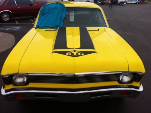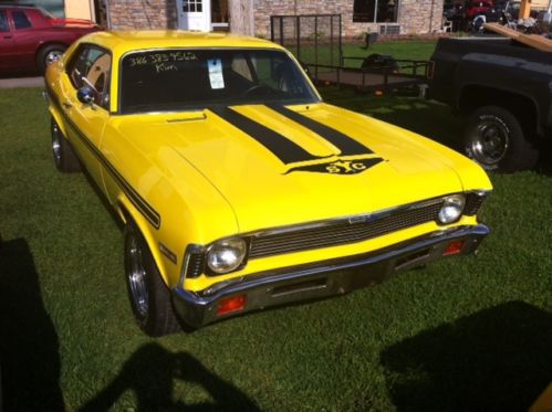 Ok hear we have a very sharp looking nova the body and paint work is excellent car was partially disassembled doors trunk hood glass was all removed started out with very clean rust free car reworked compllete paint base clear all all door jams trunk and hood fender lips very straight no waves or ripples new interior seats carpet door panels good strong running 350 v/8 engine with some dress up strong auto trans with slight shift kit all crager wheels white letter tires new weather striping new dual exhaust underneath of car all seam sealed and under coated please look close at this car there are many out there but compare apples to apples you will see what we are offering for a very good fair price feel free to call with any questions shipping is available threw our shop for a very reasonable price