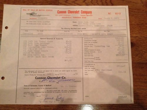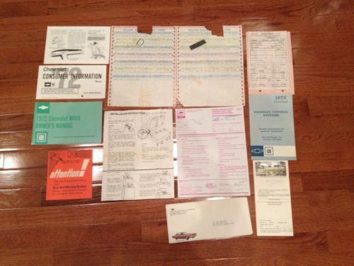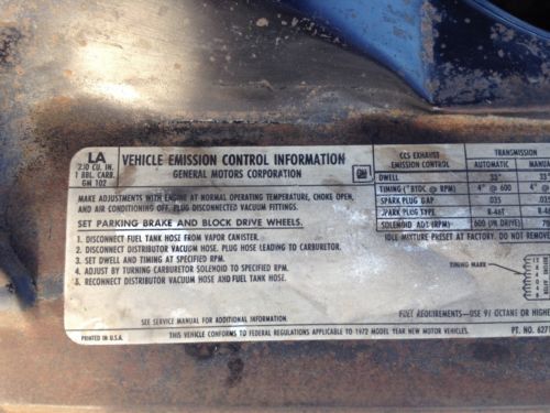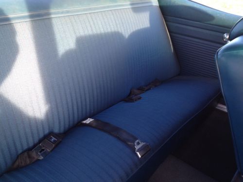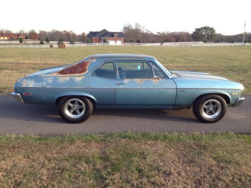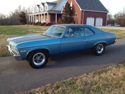 1972 Blue Nova 250 6 cylinder with 2 speed powerglide transmission 32k original miles This car has been in TN all of its life. No excuses for this car !! There is no rust in the car, (with exception to passenger side inner fender where battery acid leaked down and caused a small hole) and has all the original metal with perfect lines on the car I have all the original documentation for the car as well. I have two build sheets, protect-o-plate, bill of sale, owner’s manual, and have three key tabs that come with the car new. Buzzer still works when the key is put in the ignition and the fasten seat belt buzzer and light come on till you fasten your seat belt. This car runs and drives great !! No power steering or power brakes, handles