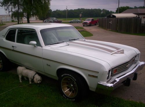 FOR SALE 1974 CHEV NOVA DUCE CUSTOM,IT HAS A 350 MOTOR BEEN BORED 30 HAS A MILD CAM, 3500 STALL, MOTOR/TRAN, HAS 200 HUNDRED MILES ON, THIS CAR BEEN COMPLET RESTORED,IT IS A HATCHBACK,IT HAS GLASS PACKS, TOBUR RIMS, FRONT AND BACK, AIR SHOCK, NEW FRONT WINDOW, TRANS HAS A SHIFT KIT IN IT, AIR, BUT NOT WORKING, NEW TIRES FRONT SIZE ARE 225/60/R15, BF GOODRICH/TA, BACK TIRE ARE 235/60/R15, NEW CUSTOM PAINT JOB, ABOUT THREE YEARS OLD. CAR SHOW 24876 MILES ON. IM SELLING THIS FOR A FRIEND BECAUSE HE DOZE NOT HAVE A COMPTURE.