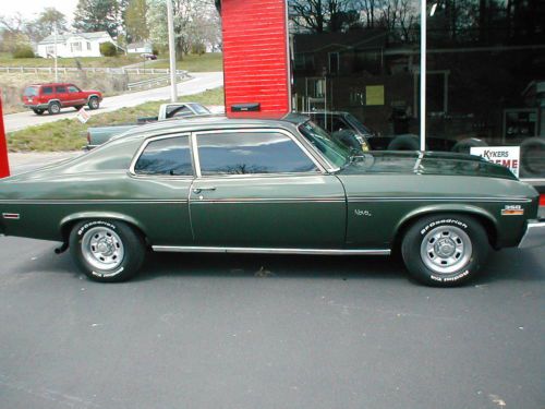 THIS IS A 1974 NOVA CUSTOM, ORIGINAL FLOOR MATS, ENGINE,TRANS. SPARE,JACK AND WHEELS. PAINTED MANY YEARS AGO AND GARAGE KEPT ALL ITS LIFE. LOW CORRECT MILEAGE CAR WITH AC,PS,PB,AUTOMATIC. CAR IS COMPLETELY UNMOLESTED WITH NEW TIRES, BATTERY AND TUNE UP. RUNS OUT 11O%. DRIVE ANYWHERE WITH CONFIDENCE. COMPLETELY SERVICED AND INSPECTED. CAR NEEDS HEADLINER COVERED AND HAS SOME LIGHT BODY REPAIRS OVER DRIVERS DOOR MADE MANY YEARS AGO(SEE PIC). NO JUNK HERE. THIS TRULY IS ONE OF THE BEST UNMOLESTED NOVAS WE'VE FOUND. TURN KEY CAR-DRIVE OR RESTORE OR MODIFY EACH TO HIS OWN. YOU WONT FIND A BETTER EXAMPLE! BID WITH CONFIDENCE AND BID TO BUY!!