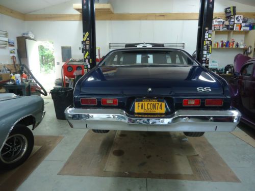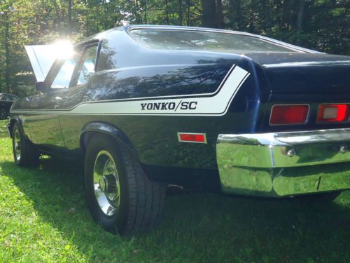 This 1974 Super Sport clone is in grrrrreat condition. It sports a Summitt Racing 383 STROKER backed up with a rebuilt Turbo 350 trans. with a shift kit that makes for a very potent pkg. The Nova has a brand new interior ( medium blue ), brand new tires, power steering, power brakes. Super straight body panels and an awesome paint job. The car has to many reciepts to list ! This car is for sale locally and may be taken off e-bay prior to auction ending. Thanks for looking e-mail any questions you may have.