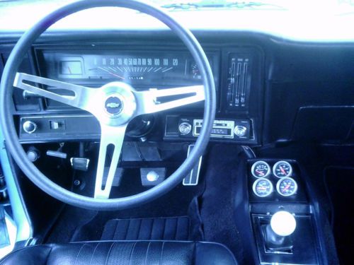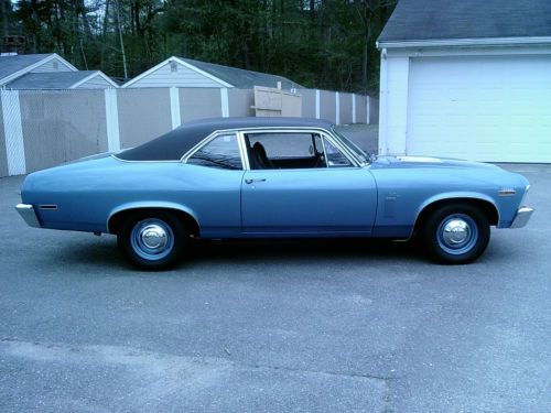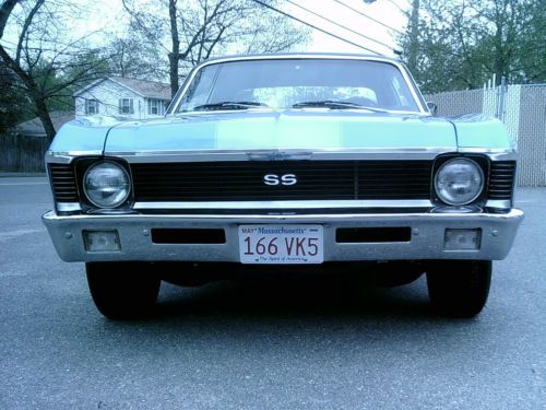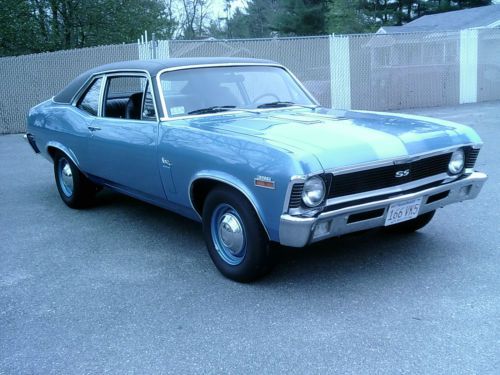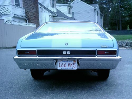 ""Please be sure to read this whole ad before bidding or replying"".....Up for sale is my restored 1970 Chevy Nova SS 396 / 4 speed ""tribute"" in nice condition.....Has a G.M. Goodwrench 454 crate engine dressed up as a 396.....New dual feed 4 brl carburator.....New Edelbrock dual plane aluminum intake manifold.....New H.E.I. Ignition.....New 4 core aluminum radiator.....New flex fan.....New battery.....New chrome valve covers.....New chrome air cleaner.....New chrome alternator.....New jet coated exhaust headers.....New 2-1/2 inch dual exhaust.....Has a Muncie 4 speed manual transmission.....The transmission upshifts through all 4 gears fine.....Reverse also works fine.....The transmission also downshifts, but it will "not" downshift from 3rd to 2nd, however it does downshift from 4th to 3rd and 3rd to 1st and even 2nd to 1st (( just "not" 3rd to 2nd )).....I am not sure if it's a shifter related issue or a transmission related issue, but it does not bother me ( I drive it just the way it is ).....Has a 10 bolt posi rear end with 308 gears.....Power steering.....Front disc brakes.....Oversized front sway bar.....New big block front coil springs.....New rear leaf springs with polyurethane bushings.....Solid body with good gaps.....New SS hood.....New SS hood grill inserts.....New front and rear SS badges.....New 396 fender badges.....New front and rear bumpers.....New door handles.....New door mirror.....Doors open and close like a new car.....Nice quality basecoat / clearcoat paint of Astro blue.....All glass is very nice.....New steel wheels.....New dog dish wheel caps.....New tires all around.....Very clean and solid undercarriage.....Interior is all very very nice.....Has working in dash tachometer.....Console with full gauges.....The lights work, wipers work, horn works, e-brake works, heat works, radio works, speedometer works, gauges work, interior light works, dash lights work, and all seat belts are intact.....Car is currently registered and has a clean Massachusetts title in my name.....Please reply or call with any questions.....1-978-535-4925.....Ask for Richie. This car is being sold as is with no warranty.....eBay recommends that all bidders ask questions before placing a bid ( that is the bidders decision ).....eBay also recommends that buyers have cars inspected before buying ( that is also the buyers decision ).....This ad is for informational purposes only.....The seller will not be held liable with how you define this ad.....I have the right to end the auction early as the car is also for sale locally. |
