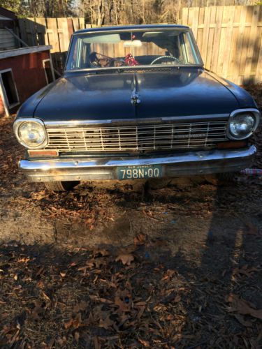 This rare 1964 Chevy II Box Nova - four door is screaming for restoration. It would be a wonderful addition to any chevy collection. This classic car sports its original inline 6 with the 3 speed manual column shift transmission. This car is all original with the exception of the master cylinder and an added hood ornament. The interior needs to be redone as well as repairs are needed on the body as would be expected with any car of this age. It is a beautiful Daytona Blue exterior with a light blue interior. This car is not currently drivable and will need to be picked up with either a car trailer or tow truck. Shipping is the buyer's responsibility. This car is being sold as is, there is no warrantee. Winning bidder must contact seller within 48 hours of end of auction to arrange for pick up. Minimum of 50% of final purchase price must be paid via Paypal within 48 hours of end of auction with remaining balance to be paid in cash upon pick up of vehicle. No refunds will be made on this auction.