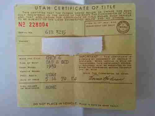 1930 Chevrolet Truck is a solid platform to restore original or make a hot rod or rat rod out of. I have what appears to be the original title (see pictures). Tires hold air but side walls are cracked. Includes a spare painted rim. The floor, top and steering wheel need attention to your taste. Missing the passenger side engine cover. Glass in the front and rear window. The bed is about 5 years old and in great condition. I recommend local pick up but will help with loading on carrier. Buyer is resonsible for shipping. I am 20 minutes from Salt Lake International Airport and can arrange pick up to see it. A serious buyer may call anytime 8019794670. Auction may end early as it is currently for sale locally. A super cool truck with a low reserve. Thanks for looking!