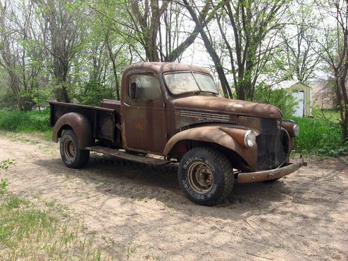 Underneath the dust, rust and broken glass is one of the best examples of Chevrolet history that would love to be restored or rodded out. This Art Deco 1941 Chevy 3/4 ton pickup has been around the block a time or two, but I'm guessing you have never seen one quite like this. This truck was a rat rod before rat rods were cool. Just look at the custom front fenders, chicken wire grille and wooden running boards. This one just speaks for itself. Please look at the pictures to see this in full detail and don't speculate anything. If you need more details please ask and I'll do my best to get you the answers you need. As you can probably guess this truck has been sitting outside for several years. It is a fairly complete and solid vehicle, but will require a total restoration or used as parts or a rat rod. Parts are rusted, glass is broken and the multi-colored paint is peeling, but you just can't make patina like that. The doors have missing parts but do open, as does the windshield. The hood is not the best, but does operate. The box came from another truck and is just sitting on the frame. The engine is stuck, the steering box is locked up and the steering column is broken. The "mileage" odometer reading is unknown, but is exempt on the title because of the age. This will roll onto your trailer and I can help with a tractor and loader. The wheels are from a mid 70's chevy 4WD truck with pretty nice 31x10.5x15 tires. This has a clear, clean and current Nebraska title as a 1941 Chevrolet Pickup with the model # matching the vin tag. As you can see in the picture the vin tag is all faded, but the stamped vin # is intact. If you are the winning bidder on this auction and you only want the title and vin tag, I will gladly send those to you free of charge and reimburse you $100 from the final bid for the truck. If you only want parts off this truck, you can gladly come and remove what you want and I will dispose of the rest. I will continue to store this truck outside in the elements up to 1 year free of charge until you come pick it up. If I still have it after that year is up and no other arrangements have been made I will consider the truck abandoned and I will resell again. This truck is selling as is where is with no guarantee. I will require a $200 deposit via pay pal within 72 hours of auction end, and the remaining amount within 30 days or cash at the time of pickup. Please plan on picking this up yourself. I have worked with shippers before and some have been difficult to deal with. The shipper I would use with no questions asked, is Marc Springer from Snortn Boar Transport. You may have seen his work on the A&E TV show Shipping Wars. He shipped my 1940 1 1/2 ton on the first season episode "Bullship" I have already contacted Marc, and he would be glad to ship for me again. Who knows, maybe it would make it on TV again. I would consider delivering this myself within a 200 mile radius of me for $2.00 a loaded mile. So if it would help for me to get it a little closer to you, it may be a possibility. My reserve is low on this truck as I feel the title is worth it alone. But if you were to part and scrap this out there is plenty of $$$ to make. I do have other parts that may be available to buy depending on when this truck is picked up. Thanks for looking, and please email me for any questions and or concerns.