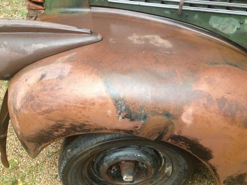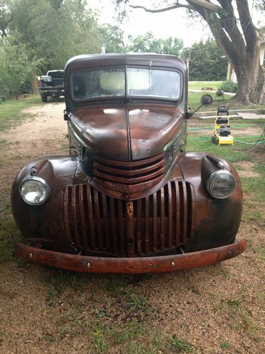You are looking at a 1946 Chevrolet short box pickup. VIN 5CK Q5 2371 Please note that the mileage is unknown and is exempt on the title. This is the crem de le crem of these trucks. You cant find too many of these anymore in this shape and having a current title. I purchased this truck from an older gentleman who had driven it to school. It had been in his family for a few generations, but has been sitting for several years since. From what the vin buster on stovebolt tells me, this is a interim model built in Kansas City and has a 115'' wheelbase. Just take a close look at the pictures as this truck speaks for itself. As you can see, there is a large dent on the roof, the wiper motor panel is rusted out as is the upper grille / radiator baffle and some slight rust thru in the beltline. But look at all the positive aspects this truck is offering. That custom spinner knob! Artillery wheels on the back! And the pictures were taken just after I washed the grime off so you could see what it would look like if you just clear coated it as it sits. The floor of the bed has had a steel floor welded into it, but the wood floor remains below. The doors and windows all operate and the key is in the ignition. This is a very solid and mostly complete truck. Sure it has some damage, but nothing that can't be worked out, or leave it as it is and rat rod it. This truck has lots of patina that you just cant find everywhere. This truck does not run, but will roll onto a trailer. I can assist with loading this onto your trailer. I will not ship this truck, but will work with your shipper at my convenience. I may however deliver this up to 200 miles from zip code 68330 for the right price. If you are the winning bidder on this auction and only want parts, that is fine also, but you will pay the final bid. Come take what you want, and I will dispose of the rest. This truck will need to be picked up within 6 months of the auction end, unless other arrangements are made. A $200.00 non refundable paypal deposit will be required within 48 hours of the auction end, with the remaining balance due before pickup, or cash at time of pick up. (the longest eBay option is 14 days) Please ask me any questions you have and I will try to get you the best possible answer. This truck will come with a bill of sale and a title that is clean, clear and current in my name. This truck is selling as is in a no reserve auction. If you are in the area and would like to look at this before you bid please get ahold of me and we can set something up. Please contact me if you are a 5 or less before you bid so I know that you understand the details of this listing. Thanks for looking and please email me for more info or pictures. I am also listing several items that could be used in a 41-46 truck build, so please check out my other listings and see what else you could pick up at the same time. I may also have other parts to sell when you come get this truck.