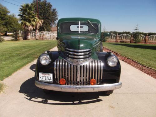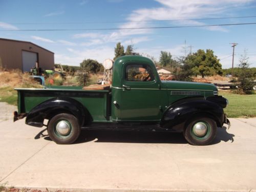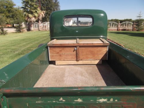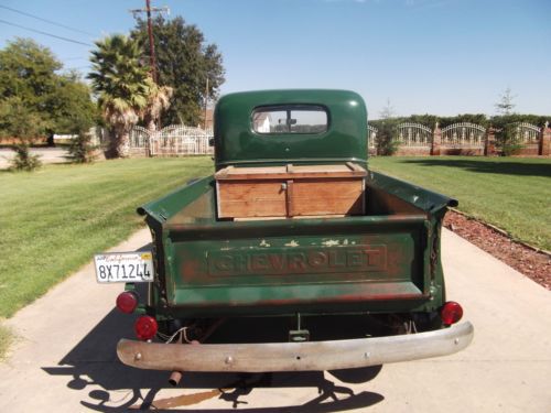 1946Chevrolet Shortbed Pickup Has full oil pressure 235 inline 6 cylinder engine 3 speed manual transmission with new water pump 2 owner pickup previous owner had for more than 20 years runs strong can be used for daily driver Runs and drives like it would've from the factory Has new brown headliner to match seat and new rubber mat not installed yet Hard to find such a clean unrestored survivor pickup in this condition Parking brake works Clean solid California truck with no rust stored in a barn for years farm fresh All the fluids changed brake gone through and flushed All the gauges work and no cracks in glass all original Front windshield cranks out and works Has spare tire holder under bed also The bed wood is all original with steel runners has a piece of plywood over with toolbox Can help with shipping or export overseas For more info 530-415-9205 Paul |