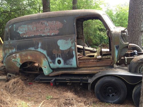 This is our 48 panel we purchased to do a rat rod. As you can tell it is extremely rough and is pretty much toast. We really want someone to save this thing. There is NO suspension, steering engine or transmission. I have the doors and bumpers. If you have any questions or need any further info please let me know. I can be contacted at 256-759-2620 or via the message center. Please save this thing from the crusher. It is listed locally so I reserve the right to end the auction at anytime. The truck will be sold with a bill of sale only. Alabama does not require a title for vehicles prior to 1976.