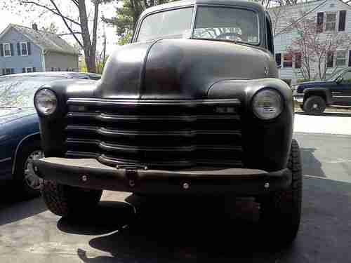 MODIFIED 1949 CHEVROLET 3100 PICKUP, COMPLETELY AND PROFFESIONALLY REBUILT FROM THE GROUND UP. THIS TRUCK WAS ORIGINALLY A PLAIN 49 CHEVY 6cyl 3speed manual transmission 2 wheel drive farm truck, BUT NOW I TRANSFORMED IT INTO 1949 MODIFIED CHEVY 4 WHEEL DRIVE WITH A 5.7L V8 700R4 4 SPEED AUTOMATIC OVERDRIVE TRANSMISSION WITH POWER STEERING,POWER DISC BRAKES THE COMPLETE FRONT END AND DRIVETRAIN HAS BEEN TOTALLY UPGRADED TO BRAND NEW ALSO A BRAND NEW DUAL EXHAUST SYSTEM THE EXTERIOR IS PAINTED SATIN BLACK AND THE BED IS SOLID OAK THE INTERIOR IS ALSO BLACK WITH NEW HEADLINER AND 3 PIECE BENCH TYPE SEAT W/CENTER CONSOLE AND IS FULLY CARPETED. I HAVE THE ORIGINAL TITLE CERTIFICATE AND THE ORIGINAL REGISTRATION CARD FROM THE LAST TIME IT WAS REGISTERED.....ANY QUESTIONS PLEASE DON'T HESITATE TO CALL NO TEXTS PLEASE. THANK YOU FOR YOUR INTEREST IN MY TRUCK. FRANK @ #401-323-1920