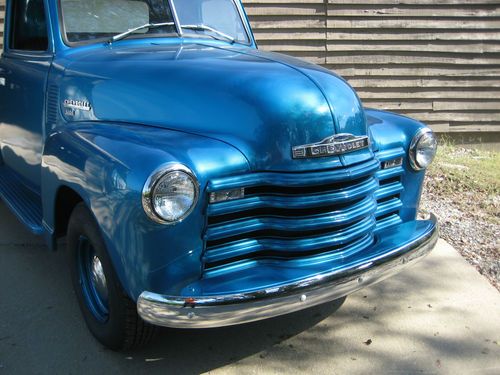 You are bidding on a very nice 1950 3100 1/2 ton Chevrolet Pickup. We have owned a few of these and this is by FAR the best running, driving, riding, and functioning truck of this era we have seen or driven. The truck was restored approximately 6 years ago and has been driven very little since. It has the straight 6 cylinder engine with 4 speed (3 plus granny low) transmission with shift in the floor and starter pedal in the floor. I do not know if the motor and trans are original to the truck, but they both function very well. It has been converted to 12 volt, bolt pattern has been converted from 6 lug to 5 lug, all gauges (even the gas gauge) work, and wipers work. The only fault this truck has mechanically is the first few times you use the brakes a back one locks up from not being driven. It straightens up and stops fine after a few stops. All window felt, window rubber, fender welt etc. are new and in great shape. All glass is very nice. Tires are new with Chevrolet rally wheels and Chevrolet hubcaps. The body is in very good condition with a very nice paint job. I would give it a solid 7.5-8 out of 10. The vent in the cab even works very well and has new weather stripping(see pic). The only items obviously not replaced or reconditioned are the inside and outside door handles and widow cranks. They are pitted some and show age, but are much better than any of the reproduction stuff out there. Interior is very nice only needing the cardboard headliner. Seat, floor mat, door panels, etc..all in very good condition. Please look at the pictures closely and ask any questions you might have previous to bidding. I have done my best to honestly represent the vehicle through description and photos. If you want a truck you don't have to spend a dime on to cruise and show, this is the truck for you. Truck is for sale locally and I reserve the right to end the auction due to local sale if the reserve has not been met. Buyer is responsible for transport of vehicle. Feel free to call or text 501-337-3792 with any questions. Thank you, God bless and happy bidding.