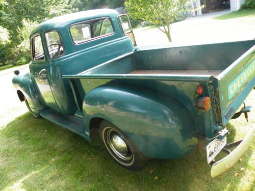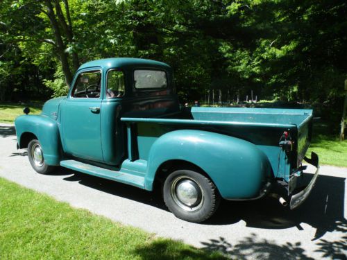 52,000 original Miles!! Selling my awesome 1950 5 Window pickup. Truck is a real 3100 series half ton with the rare and desirable 5-Windows. These trucks are harder and harder to find in this condition with 5 windows. The truck is pretty much all original with no alterations, cutting, or bondo etc. Was a 1 owner that was well taken care of and maintained. This is pretty much a rust free vehicle that is very solid. Looks like a couple paint jobs over the years but no rust through spots anywhere, just surface underneath, yet still solid and some on the running boards,(which have replacements), and a couple nicks etc., that you would expect. I would call it a "5 Footer". Truck is still equipped with it's original motor (216-hp),and drive train, which operate flawlessly, and the exhaust is new stainless from motor, all the way back. Shocks were also replaced. Brakes were checked and are fine. Replaced the water pump and rebuilt the generator as well as putting some tires on. Included with the truck will be a brand new set of running boards and a bed kit with stainless strips, still in boxes. (close to 2K in parts). Presently, there is a metal plate in the bed that works fine for now. This truck is super solid, virtually rust free and un-touched. Your call whether to keep it so original or hot rod it. You will not find a better one in this part of the country and actually if it was a southern or western truck you would not know, due to the lack of rust. Floors are solid. Only thing I can see changed was the foot starter was replaced with a much more user friendly ignition switch on the dash. Naturally, a vehicle this old is sold as is with no warranty. Please note that the great State of CT does not issue tiles for vehicles this old, as is the case with most states. You will receive a CT Bill of Sale and a copy of the present registration. Please check with your DMV before bidding. Will sell to and ship anywhere but buyer is responsible for payment. I will gladly help load etc., but do not want to be held up with international shippers. (I checked "clear" for title, because you are forced to list one of eBay's categories, since there is no option for "none".) Will accept Pay Pal for deposit but if you want to pay for the truck using Pay Pal, I need to pass their fees unto you as I can not afford to absorb them, sorry. Vehicle is listed for sale locally, so I reserve the right to end the auction at any time should it sell. If you have less than 5 positive feedbacks, you need to make contact prior to bidding or I will cancel the bid, as I have had too many less than honorable jerks ruining auctions, sorry. I will answer all questions and if you want a phone conversation shoot me a phone number. Good Luck bidding on this great old Truck!! Antique Vehicle, Classic Vehicle, Chevrolet, Vintage Truck, Pickup Truck, half ton pickup, Step-side Pickup On Jul-26-14 at 03:52:37 PDT, seller added the following information: I do have a full set of 4 Tires, rims, trim rings and small bow tie caps for sale separately that have less than 500 miles on them. Depending on where the auction ends, I might include them. They are 16" I bought from a guy with a 1951 but did not use them. On Jul-26-14 at 07:40:30 PDT, seller added the following information: I also have 2 other trucks I will probably be selling also, due to some health related expenses, if there is interest, I can give more details and pictures and possibly list them, or sell outright; 1967 C-10 Chevy-pretty much rust free, 87 year old 1 owner in unreal condition with 62,000 miles. Probably looking for around 9k 1953 Chevy 5 window flatbed from CA with zero rust. Runs excellent, needs some flat glass and interior parts, (Headliner and side panels), probably looking for around 7K |
