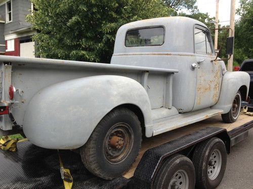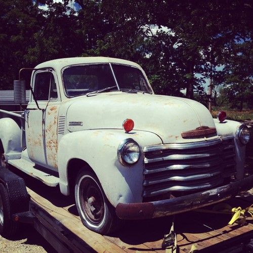 You are bidding on a 1951 Chevy Truck 3/4 Ton. Car is a good project...ready to be converted to a rat rod. Original 216 engine and 3 speed transmission. Normal rust for these trucks in cab corners and bed area. Truck does not run or have brakes but motor turns freely, just probably needs a battery. Comes with clear title. This vehicle is used and is being Sold "As Is". Buyer is responsible for shipping or local pickup. Buyer to pay $500 via paypal at the close of auction and the remaining balance with in 7 days.