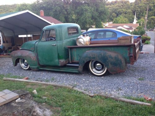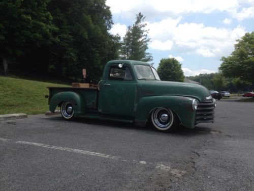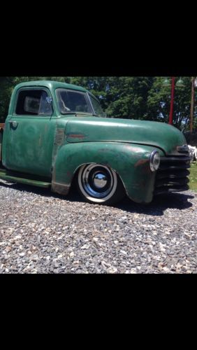 Nice 1952 chevy rat rod truck. This truck is a real head turner and gets attention everywhere I go. The truck has had a 4.3 motor out of an older c10 installed and overhauled with a small cam and long tube headers. the truck also has dual exhaust a new edelbrock carb with elec choke. Motor has all new seals plugs gaskets and sounds and runs great. It was put on a s10 frame and looks low but rides great. I put new 15" smoothie two piece wheels and bf Goodrich white walls on about two months ago. On the inside the truck has a 24" lokar shifter and the seat has been changed out with one out of a older dodge van. The seat sits great and I get compliments on it regularly. I added new running boards and new running boards bed covers. The gas tank is a older firestone keg and has an electric fuel pump mounted to the frame. Truck is rusty and ratty but looks the part and drives out great. Needs some door window glass and cab corners. Email me with questions. Thanks