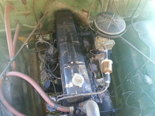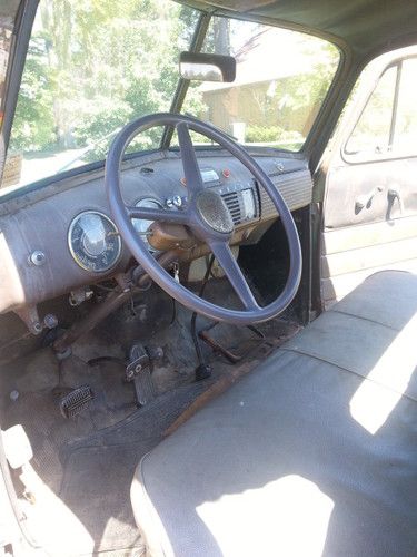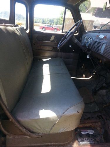 This truck was used on the farm for many years. It was garage kept for at least the last 25 years. I start it up every couple of weeks and run it up and down the block. It doesn't appear to be leaking anything based on what I see on my garage floor. I'm not a big car guy so I don't know a lot of details about it. It's four on the floor and is probably a 3/4 ton or a one ton model. There is a rust hole in the corner of the box and one in the floorboard on the passenger side. Body seems pretty solid otherwise, and I would think it would not take much work to fully restore it. Clutch feels pretty decent, but rear brakes want to lock up with just a little pedal pressure. Idles without stalling, but how smooth is a matter of opinion.