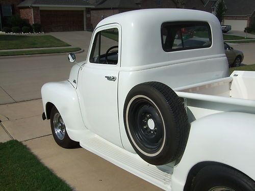 Finished in white, the paint is great condition, showing only minor imperfections. The body is in excellent condition and looks like it did back in its prime. This truck came equipped with running boards, a spare tire on the driver’s side and a stained wooden bed floor. All new 6 bolt rally wheels and new radial tires. The chrome on the truck looks great. Overall, this truck shows tremendously well.