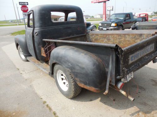 FOR SALE IS A 1953 CHEVROLET PICKUP; SHORTBOX HALF TON; HAS NOT BEEN ON THE ROAD FOR MANY YEARS; IT WOULD MAKE A GOOD BUILDER; NEEDS EVERYTHING. LOTS OF GOOD METAL, CHECK OUT PIX; THERE IS PARTS MISSING; IF YOU MAKE A LIST WHAT U NEED WITH THIS PURCHASE, I WILL FIND IT IN MY PILE OF PARTS IF I HAVE IT AND SEND ALONG WITH THE TRUCK CHECK OUT PIX FOR A BETTER DESCRIPTION. JEFF 218-464-2821 |