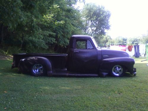 Selling this Truck for a friend 1953 Chevy Pickup Rat Rod Truck-nice patina,fuel injected V6 engine, speed manual transmission,AC,PS,PB,sits on a S10 Chassis,Not bagged,just lowered-very reliable truck,runs and drives great,comftable leather seats,Crager wheels,actual milage unknown,exceeds speedometer-not a lot of rust,just nice patina but has some dents a $ 500 non refundable deposit is due not later then 24 hours after auction ended-restpayment is due not later then 3 days after end of auction