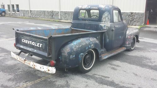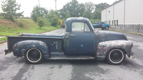 1953 Chevrolet 3100 1/2 ton short bed pickup truck. New 3" drop beam w/ new kingpins and spindles as well as new steering arms and tie rods converted to modern ball joints (from Sid @ Droppedaxle.com). 3" Posies leaf springs front and rear w/ new pins and grease fittings. 3" blocks in rear w/ new u-bolts for a 6" overall drop front and rear. New Monroe gas shocks. New brakes on all corners (drums, springs, shoes, and wheel cylinders). Dana 44 rear (dont know the gear ratio). Small block chevy w/ turbo 350 trans and floor shifter. New HEI distributor, plugs, and plug wires. New glass all around w/ new front and rear rubber seals. Seat is in great shape. Original gas tank was removed, flushed and coated and a new sending unit was installed. Steel bed floor. Floor pans solid. Converted to 12v. Truck runs great and handles great. The patina is all real - no homemade stuff here and looks awesome. I just have too many other projects going on so this must go. Can call 404-314-6175 or email mike@revolutionspeed with questions.